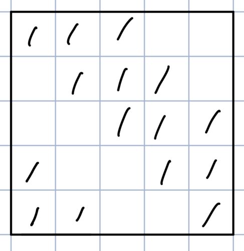 45度回転させる式は、X=x-y; Y=x+y (回転と同時にかかっている√2の倍率は無視します) 回転前のマンハッタン距離 = 回転後のチェビシェフ距離(座標の差の最大値) これで反時計回りに45度回転し、XY座標で2次元累積和を使うと解ける問題がある 例:ABC018 …