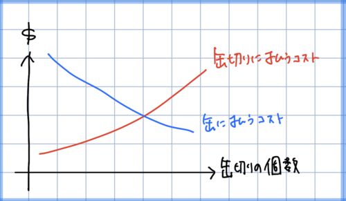 Quiz https://atcoder.jp/contests/past202104-open/tasks/past202104_h AC https://atcoder.jp/contests/past202104-open/submissions/22367788 解説 editorialとは別の解法なので書いておく 買う缶切りの数をx軸としたコスト関数を考えると凸になっている…